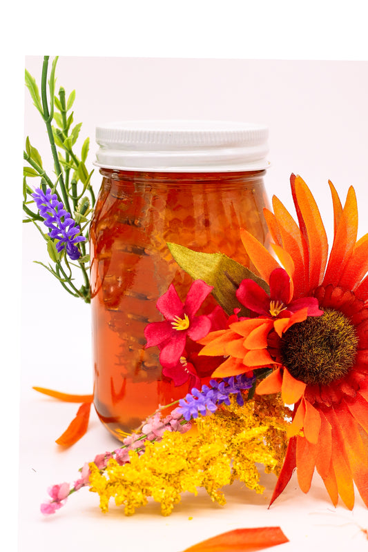 Pure Wildflower Honey 22oz Pint Jar with Comb